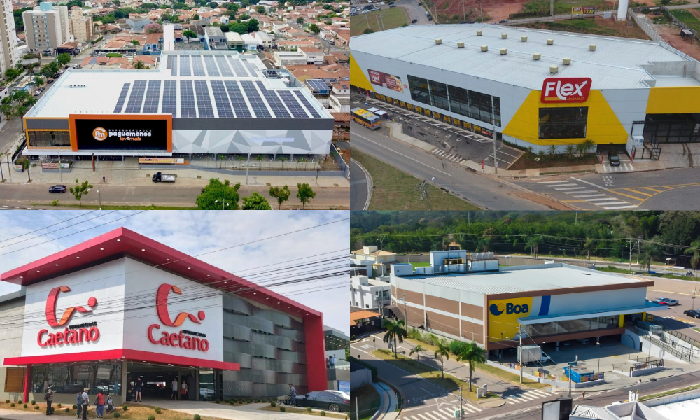Estruturas pré-moldadas de concreto, com pilares redondos, vigas sem consoles aparentes, vários balanços e fachada em painéis com inclinação negativa.