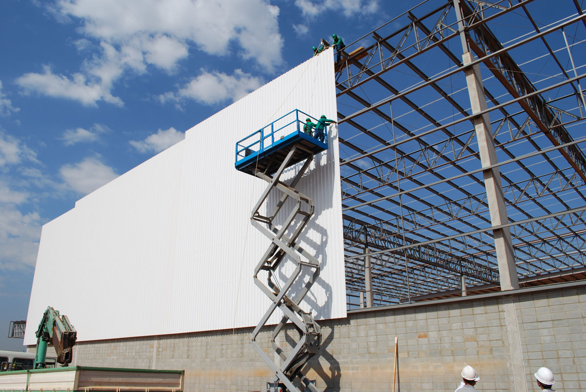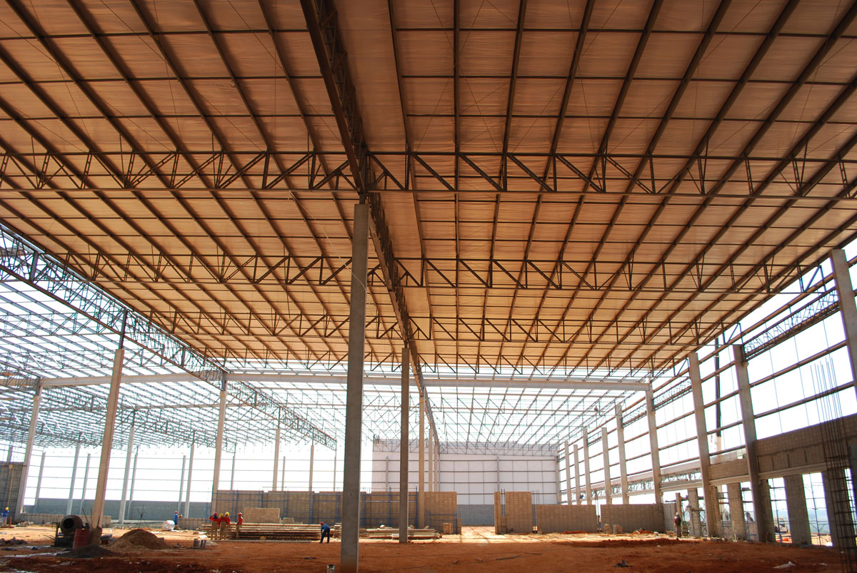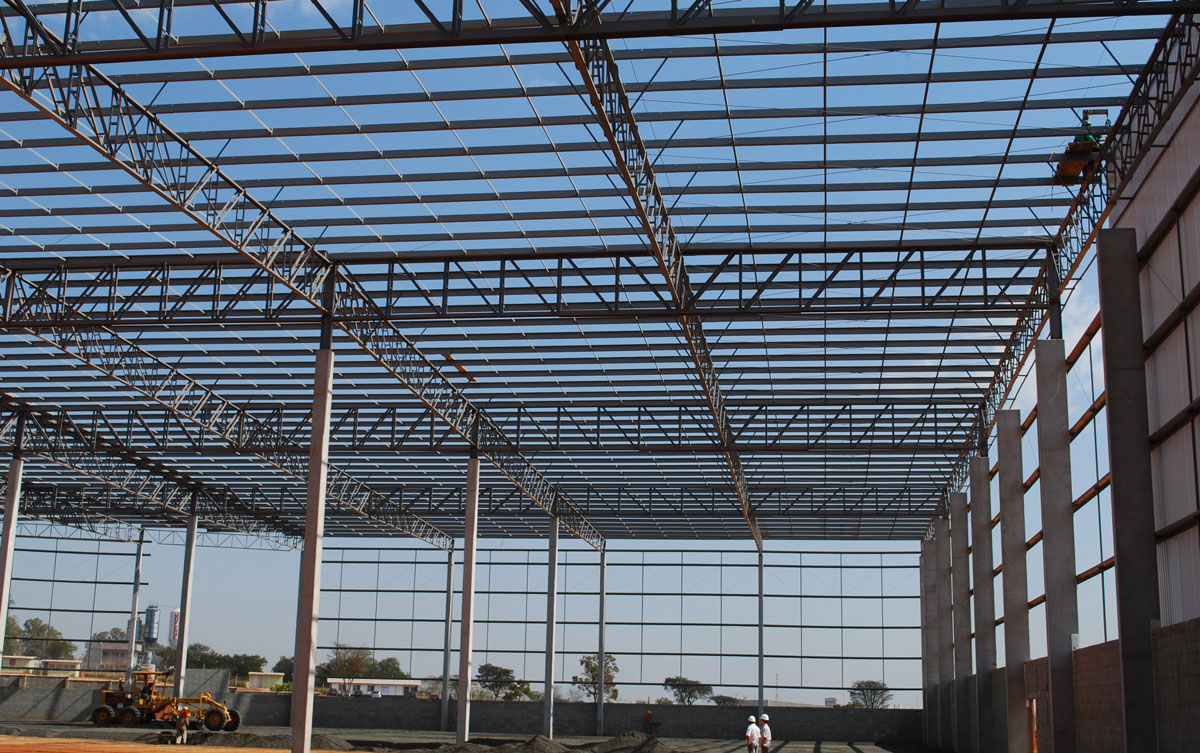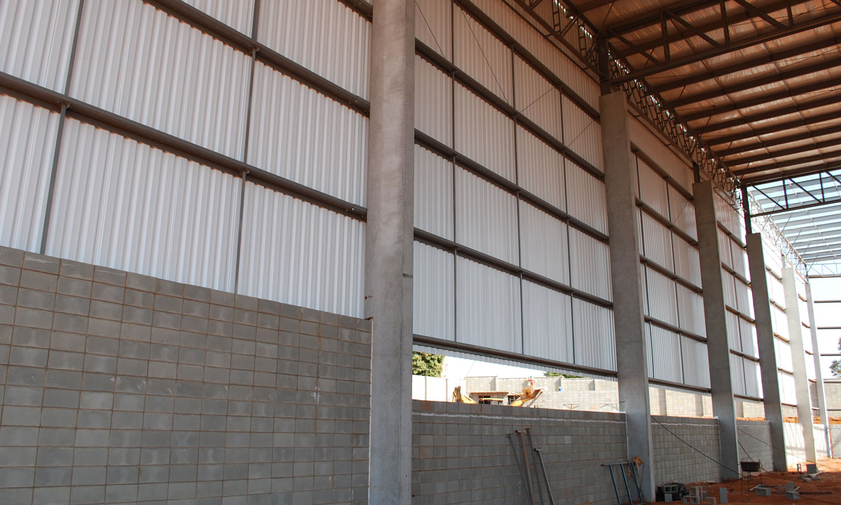 Descrição: Estruturas pré-moldadas de concreto e estruturas metálicas de cobertura.