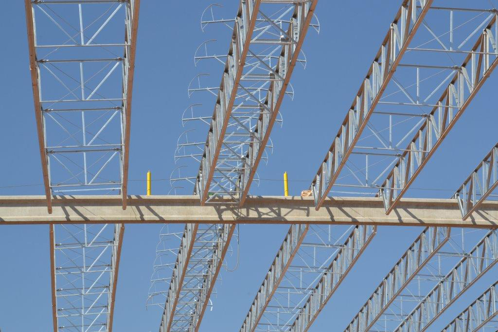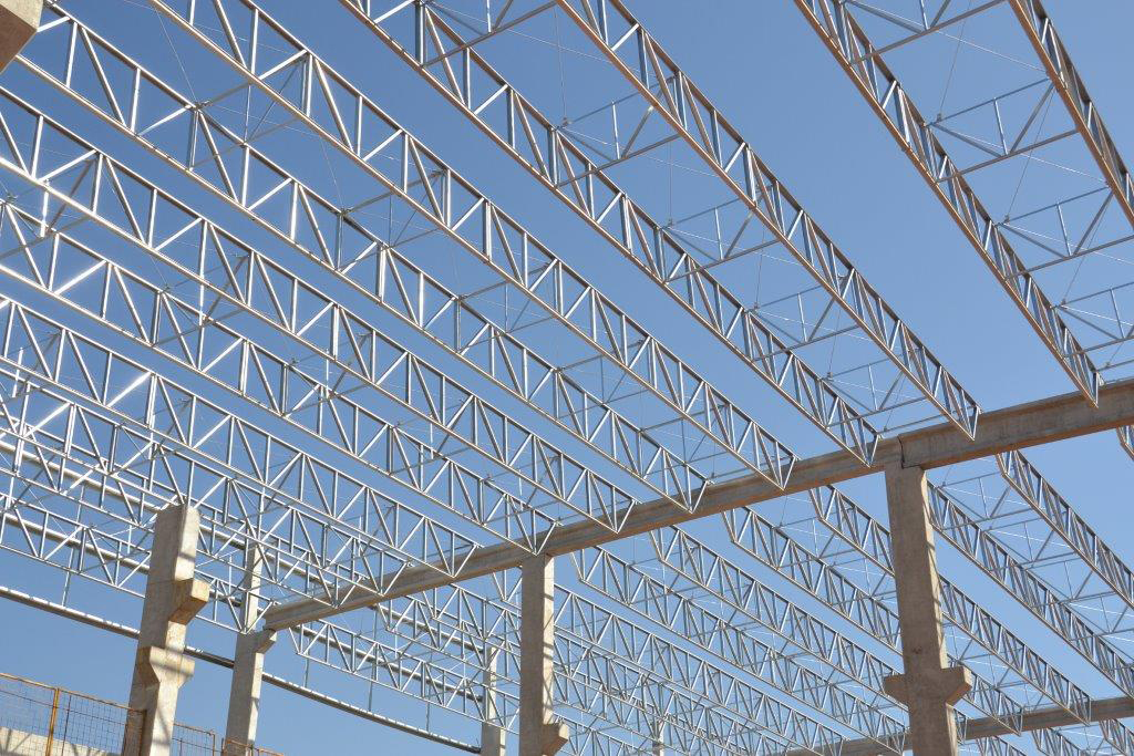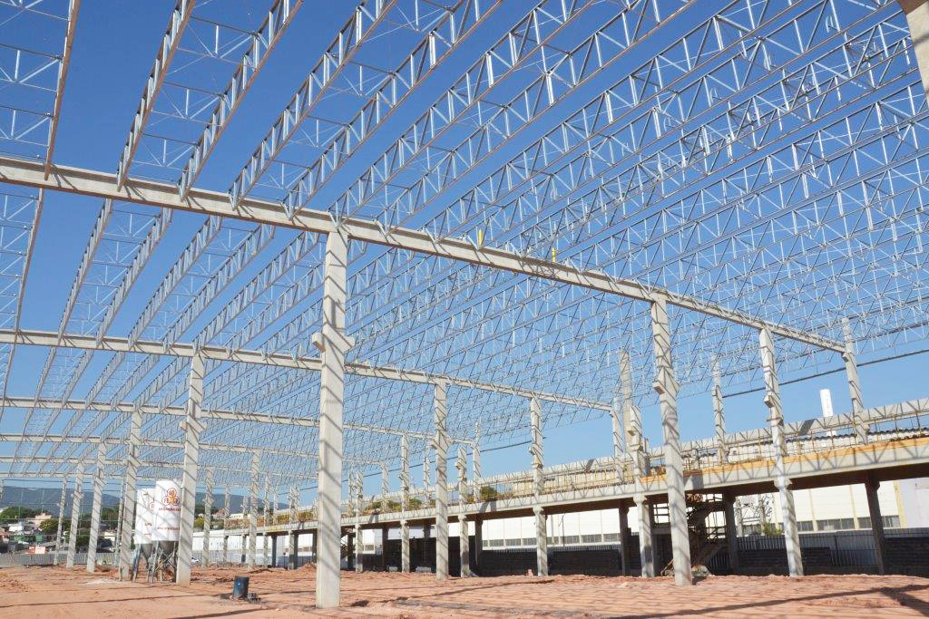 Descrição: Estruturas pré-moldadas de concreto e estruturas metálicas de cobertura.